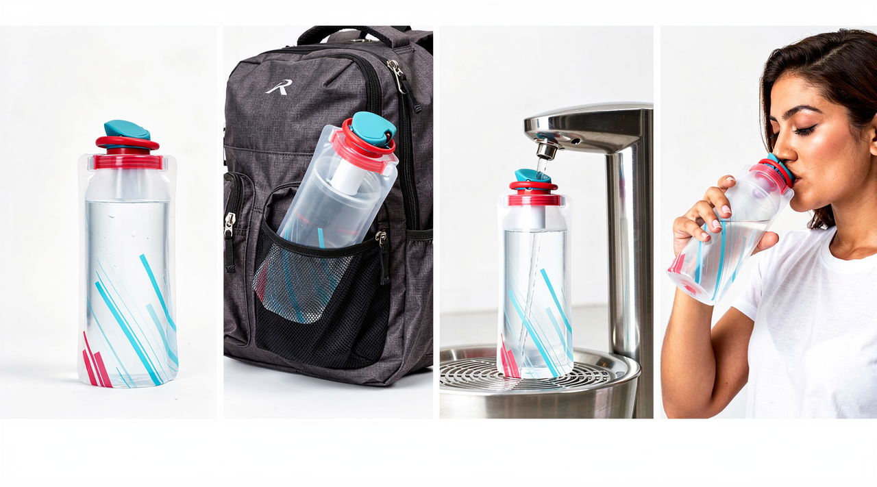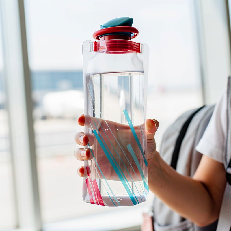 Een fles die je leeg door security neemt, daarna vult, en die plat in je zak past als je 'm niet nodig hebt. Simpel, praktisch, en geen gedoe meer.